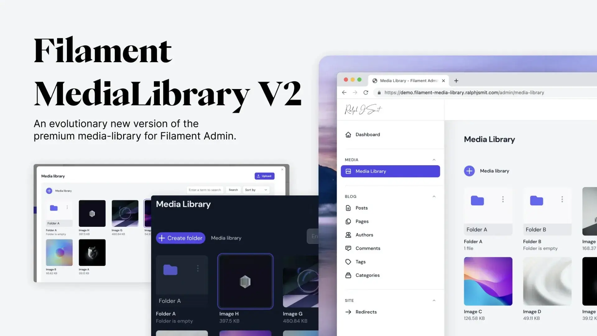 Filament Media Library - This package allows you to give your users a beautiful way to upload images to your application and